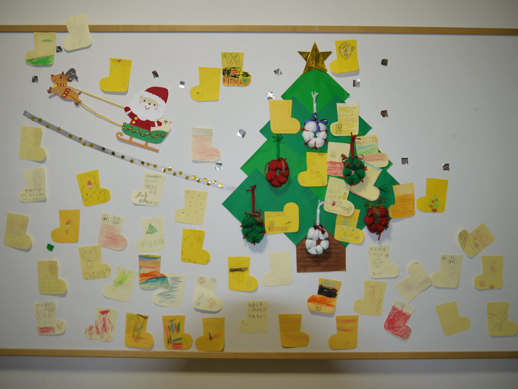 12 月は、クリスマスツリーにくつしたをかざりました。