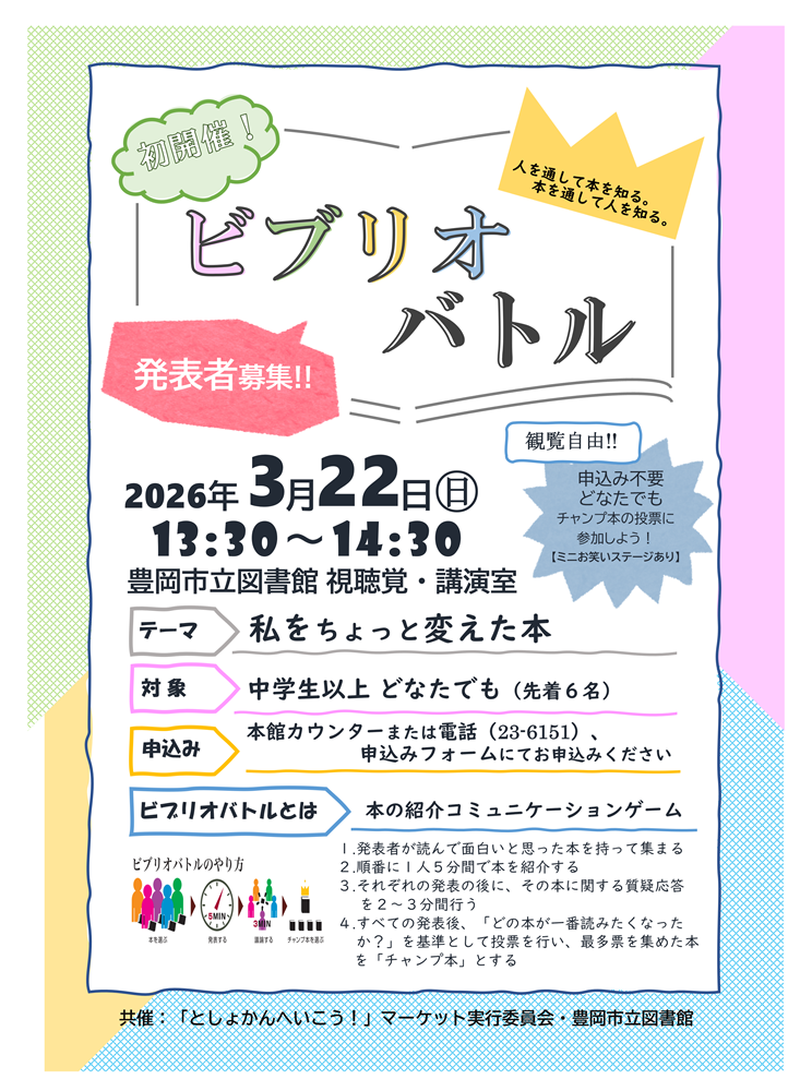 「ビブリオバトル」発表者を募集します[3月22日(日曜日)]