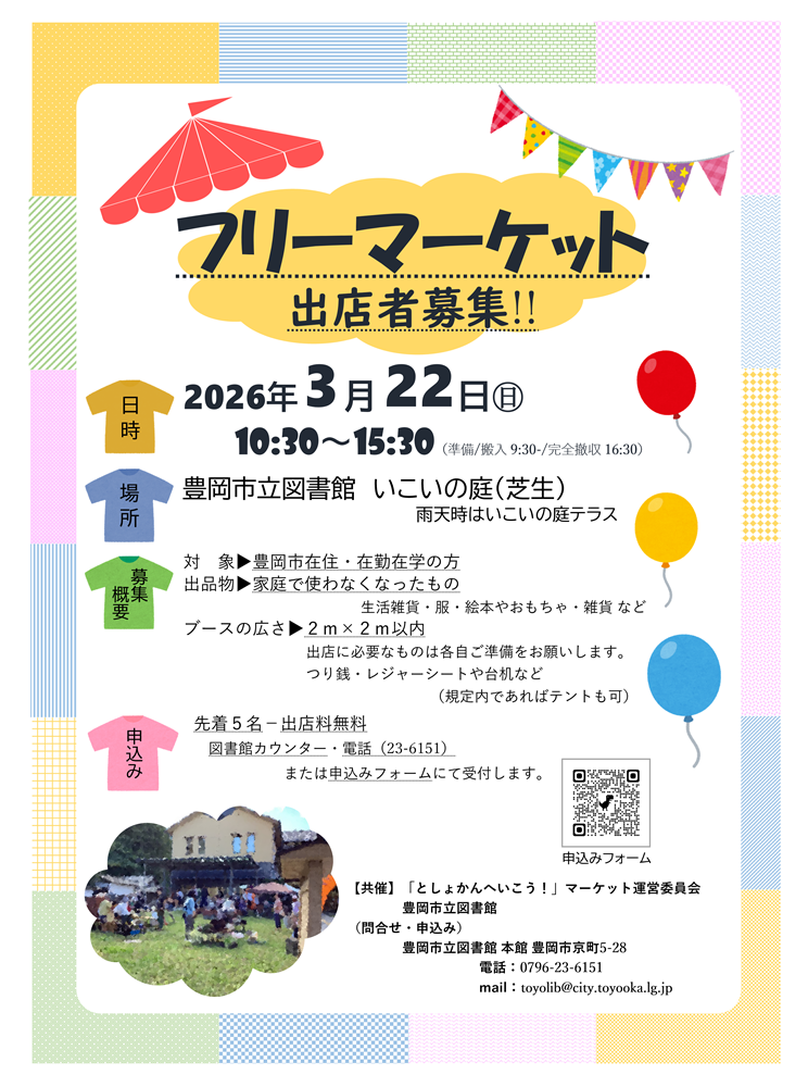 ホーム > 展示・イベント(全館) > 「フリーマーケット」出店者を募集します[3月22日(日曜日]